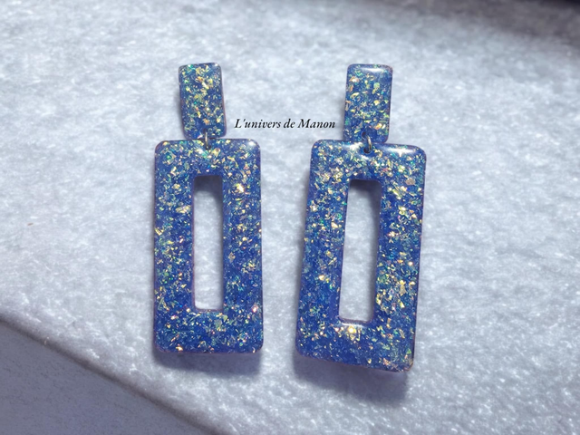 Boucle d'oreille puces , formes rectangulaire, en pâte polymère et feuilles d'or...
