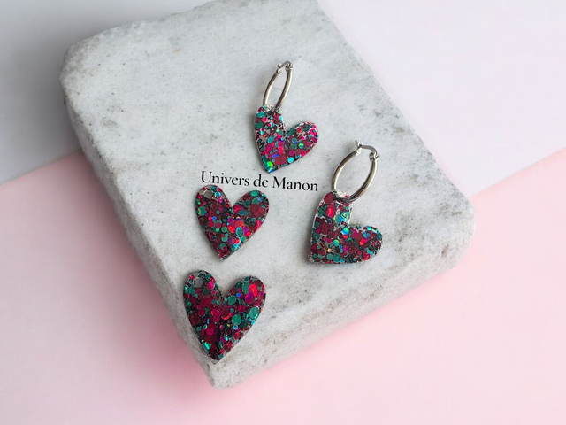Faite main avec soin, chaque pampille est façonnée avec amour, puis résinée avec une résine UV pour une finition brillante, résistante et qui sublime les paillettes.