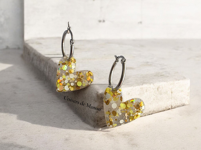 Faite main avec soin, chaque pampille est façonnée avec amour, puis résinée avec une résine UV pour une finition brillante, résistante et qui sublime les paillettes.